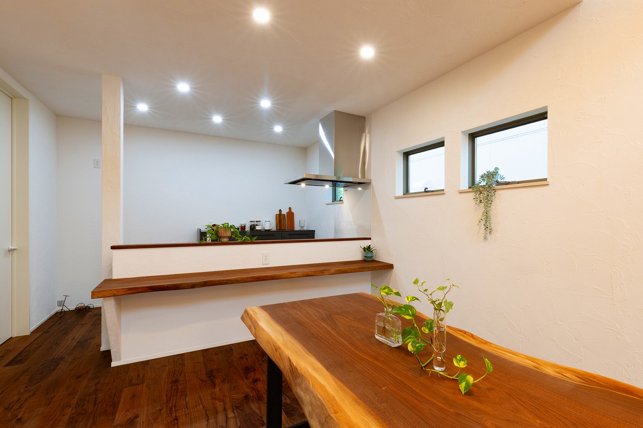 あと、本当に良かったなと思うのが家の中全体を塗り壁にしたこと。当初は人の来る1階だけにしようと考えていたのですが、社長に「絶対に後悔するよ」とススメられ、2階も塗り壁にしてもらいました。実際に暮らしてみるとその質感や空気感は最高!ずっと暮らす家なので、妥協しなくて良かったなと思っています。